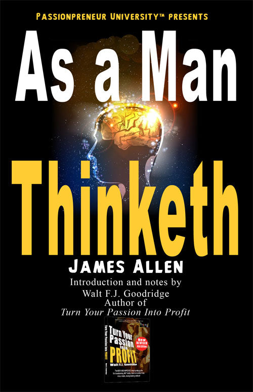 Rediscover this James Allen classic with Passionpreneur notes by Walt F.J. Goodridge, author of Turn Your Passion Into Profit. (100 pages; 5.06″ x 7.81″; ISBN: 978-1522813927)